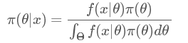 其中 π 指的是参数的概率分布,π(θ) 指的是先验概率,π(θ|x) 指的是后验概率,f(x|θ)指的是我们观测到的样本的分布,也就是似然函数(likelihood),记住竖线 |左边的才是我们需要的。其中积分求的区间指的是参数 θ 所有可能取到的值的域,所以可以看出后验概率 π(θ|x) 是在知道 x 的前提下在