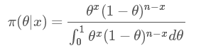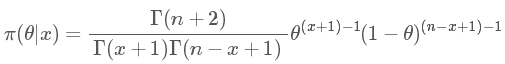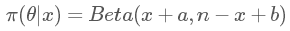 继续拿上面这个例子,如果我们把先验分布 π(θ) 设为贝塔分布 Beta(a,b),结果是什么呢?我就不写具体的计算过程啦,直接给结果: