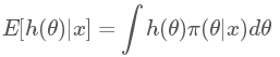 现在回到贝叶斯公式,我们现在有一个后验概率 π(θ|x) ,但我们其实最想知道的是 h(θ) 的后验期望: