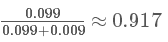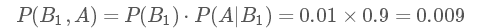 一种癌症,得了这个癌症的人被检测出为阳性的几率为 90%,未得这种癌症的人被检测出阴性的几率为 90%,而人群中得这种癌症的几率为 1%,一个人被检测出阳性,问这个人得癌症的几率为多少?