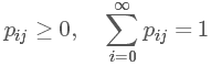 如果条件概率 P(Xn+1|Xn) 与 n 无关,成为一个固定值,那么就称这个马氏链有平稳转移概率,记为 pij 。并且我们称 P=(pij) 为马氏链的转移矩阵,且满足条件: