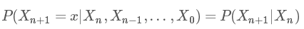 意思就是,从 Xn,Xn−1,…,X0 到 Xn+1 的转移概率只与 Xn+1 的前一个状态 Xn 有关。