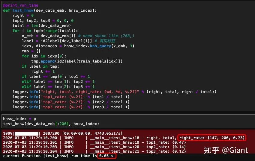 最终,预测200条样本耗时0.05秒(0.25ms/条),速度优于annoy。