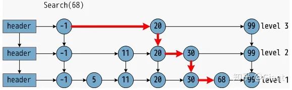 在NSW基础之上,HNSW加入了跳表结构做了进一步优化。最底层是所有数据点,每一个点都有50%概率进入上一层的有序链表。这样可以保证表层是“高速通道”,底层是精细查找。通过层状结构,将边按特征半径进行分层,使每个顶点在所有层中平均度数变为常数,从而将NSW的计算复杂度由多重对数复杂度降到了对数复杂度。