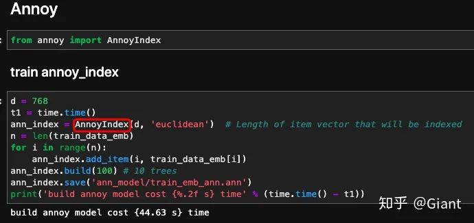 annoy包封装了算法调用的python接口,底层经C++优化实现。继续使用头条文本数据集,调用方法如下: