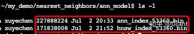 此外,同样的53360条特征向量(768维度),保存为静态索引文件后 ann 索引的大小是227MB,hnsw索引是171MB,从这一点看hnsw也略胜一筹,可以节约部分内存。