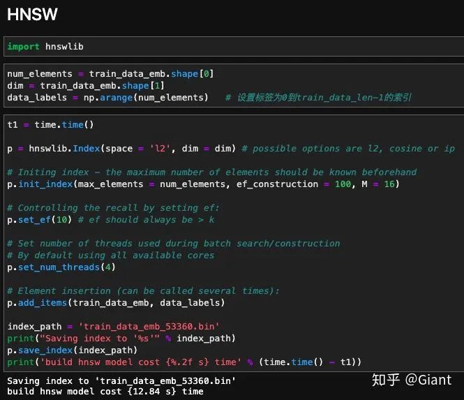 通过 hnswlib 库,可以方便地调用hnsw算法。