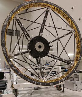 静止轨道微波探测是目前国际对地观测领域最前沿、最迫切,也最具挑战性的课题之一。美国早在20世纪70年代就提出了静止轨道微波探测的构想,20世纪90年代进一步提出了具体概念——GEM,随后欧洲也提出了类似概念——GOMAS。这些概念都是基于传统真实孔径机械扫描的微波辐射计方案。由于真实孔径方案所需天线口径太大、精度要求太高以及难以实现快速二维机械扫描等技术障碍,加之耗资需求巨大,这些概念一直停留在方案设计阶段。进入21世纪后,随着干涉式综合孔径技术的发展和成熟,美国和欧洲又相继提出了采用综合孔径技术的静止轨道微波探测仪方案,例如美国航空航天局(NASA)提出的GeoSTAR概念和欧洲空间局(ESA)提出的GAS概念。这些概念目前都已经历了两代地面样机(图2、图3)研制阶段。