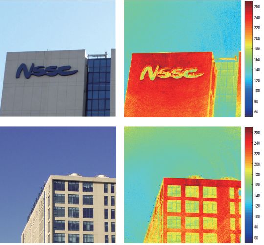 以中欧合作为契机,“十三五”期间,该中心在科技部863计划对地观测专题项目、中国科学院重点方向性项目和国际合作项目的联合支持下,再接再厉,以满足更高应用需求为目标,严格按照卫星系统的设计要求,采用了小型化、轻量化、高集成度的新型设计思路,突破了一系列载荷关键技术,成功研制出第2代全尺度、全功能GIMS地面样机(图6)。该样机是世界上第1台静止轨道毫米波大气探测仪全尺度样机,也是世界上迄今为止此波段分辨率最高的微波辐射计。经过一系列的严格测试和外场实验,获得了一批高质量、高清晰度的地物目标毫米波辐射图像(图7)。