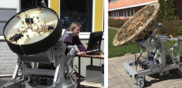 在重大需求的牵引下,中国科学院国家空间科学中心发挥其在微波遥感领域的技术优势,针对静止轨道大气探测需求提出了具有自己特色的GIMS概念。GIMS概念采用了一种新型的、具有自主知识产权的圆环稀疏天线阵列,其在成像效率、系统定标以及风险成本方面均具有明显优势。“十一五”期间,在“863计划”对地观测领域重点项目的支持下,该中心完成了关键技术攻关,成功研制出第1代GIMS功能样机(图4),经过测试各项指标均达到了设计要求,取得了很好的成像效果,成为当时本领域的亮点成果之一。