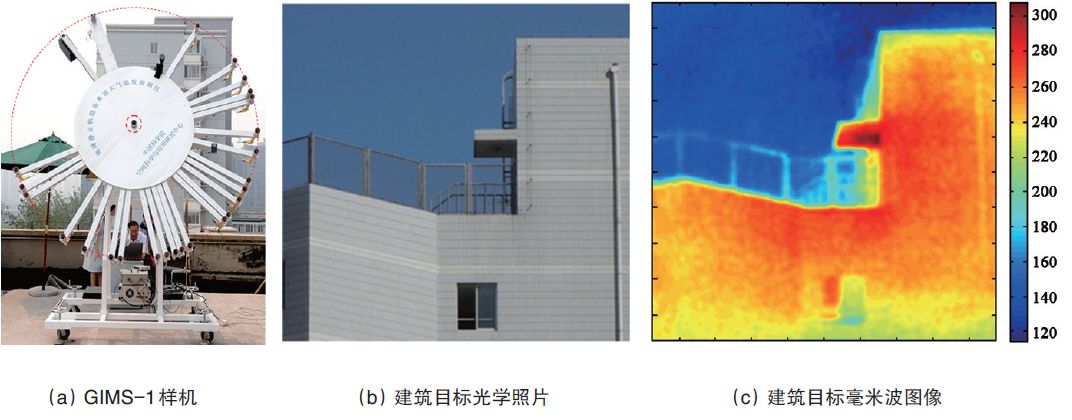 图4 GIMS 第1 代功能样机及其对建筑的成像结果