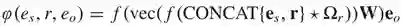 由于KG的异构性,不同类型的实体可能出现在不同的特征空间中,不适合将每个实体的所有邻居特征直接聚合起来。因此,提出实体级聚合,首先对每个基于关系路径的实体特征进行聚合,聚合方程为: