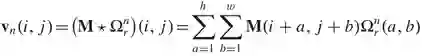 然后用N个不同的滤波器对输入矩阵M进行卷积运算,生成特征映射V 如下: