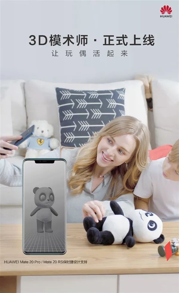 据了解,通过3D深度感知摄像头和AI算法,Mate 20 Pro可快速采集玩偶外表特征并且模拟憨态可掬的肢体动作,让玩偶瞬间活起来,亦能带来身临其境的AR互动体验。同时还可以在社交媒体软件中分享,随时随地玩出新花样。