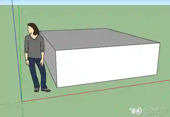 先从身边的事物入手,一万块有多少?第五套 100 元人民币长 155 毫米,宽 77 毫米。为了便于计算,我们假设一张纸币的厚度为 0.1 毫米(实际情况也大致如此)。1 万元这个数目听上去吓人,换成一叠崭新的 100 元,也不过 1 厘米左右那么厚,放在脚边很容易被忽视。我们用 Google 的 3D 绘图软件 SketchUp 直观地把这个尺寸表现了出来: