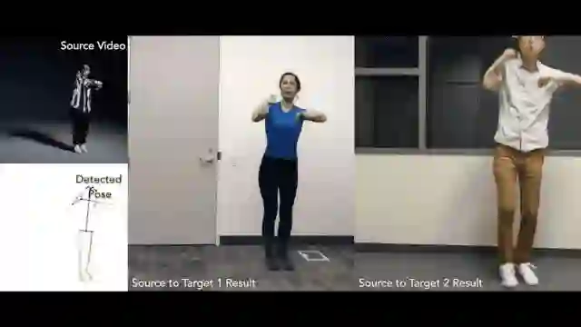 伯克利研究者提出了一种在不同视频中转移人体动作的方法。