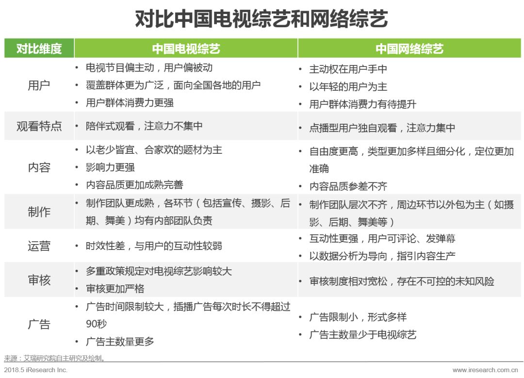 电视综艺制作团队成熟,品质高,广告主数量多,审核严格;网综互动性强,内容丰富,广告形式多样。随着政府对网络视频平台内容的监管加强,电视台综艺和网络综艺差异将逐渐降低。