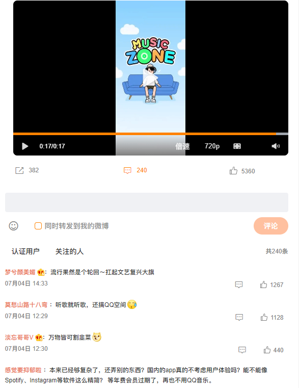 “讲真,第一次打开Music Zone时我人是蒙的,各种推荐入口已经够复杂的了,Music Zone相当于在APP里又藏了一个APP,我开始担心手机内存了”,一位QQ音乐用户在更新之后如是评论。