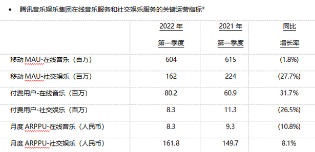 2022年第一季度,腾讯音乐娱乐集团的在线音乐服务月活用户为6.04亿。去年同期为6.15亿,同比下降1.8%;网易云音乐为1.82亿,去年同期为1.83亿,同比下降0.8%。