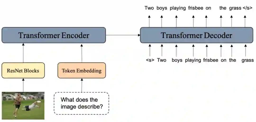如下图所示,ResNet Blocks 用于提取图像特征,Transformer Encoder 负责多模态特征的交互,Transformer Decoder 采用自回归方式输出结果。