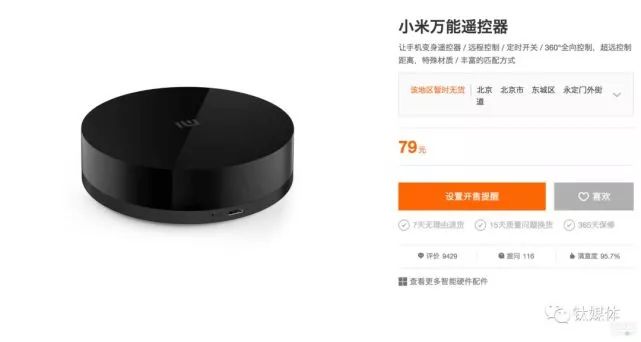 顺便一提,各家最便宜的智能插座价格都在 40-60 元之间,而除了小米 AI 智能音箱不支持,其他都支持的 Broadlink 万能遥控器售价仅为 79 元。小米自家的万能遥控器售价虽然也为 79 元,但常年处于缺货状态,淘宝上的小米之家最便宜的也要卖到 120 元左右。