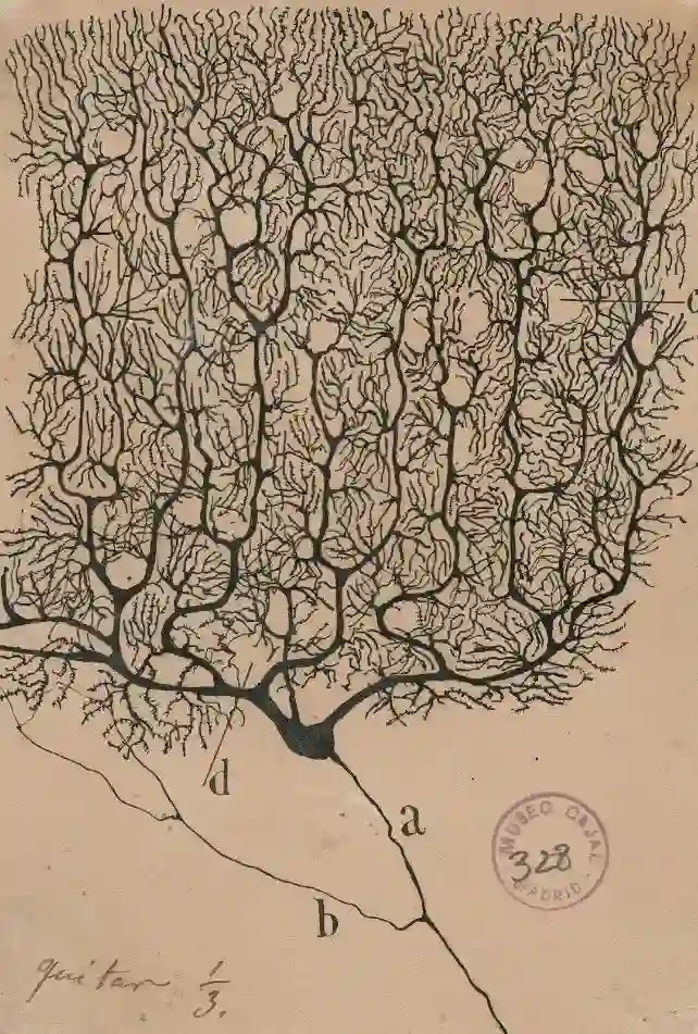 ►图3:人小脑内的单个浦肯野细胞。作者:卡哈尔 (1899年)
