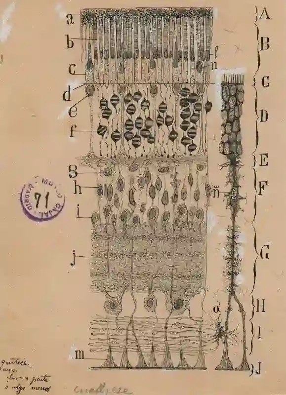 ►图2: 眼部虹膜的细胞。作者:卡哈尔 (1904年)