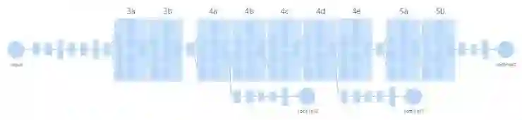 作者们基于带有 Inception 模块的 GoogLeNet展开了研究,这是一个2014年的模型 (https://arxiv.org/pdf/1409.4842.pdf ),当年也以6.67%的前5位错误率拿下了 ILSVRC 2014图像分类比赛的冠军。模型结构示意图如下;训练数据集是 ImageNet。