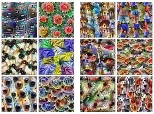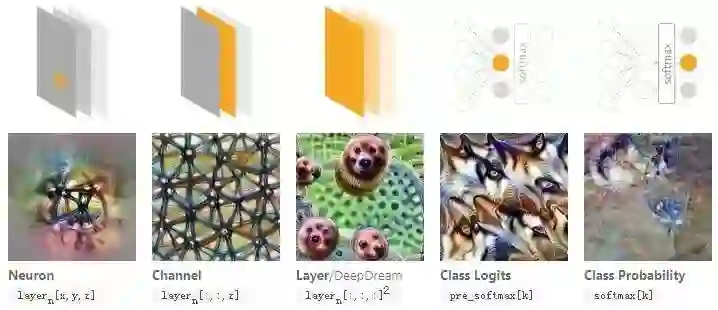 要理解网络中的单个特征,比如特定位置的某个神经元、或者一整个通道,就可以找让这个特征产生很高的值的样本。文中多数的图像都是以通道作为目标生成的。