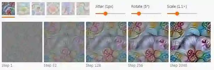 总体来说,神经网络是关于输入可微的。如果要找到引发网络某个行为的输入,不管这个行为只是单个神经元的激活还是最终的分类器输出,都可以借助导数迭代地更新输入,最终确认输入图像和选定特征之间的因果关系。(实际执行中当然还有一些技巧,见下文“特征可视化的实现过程”节)