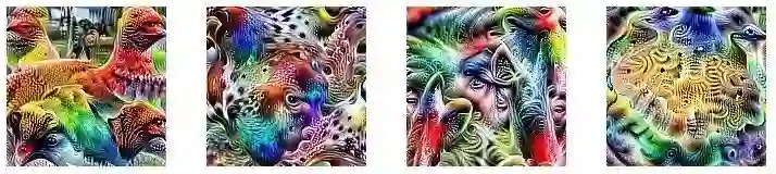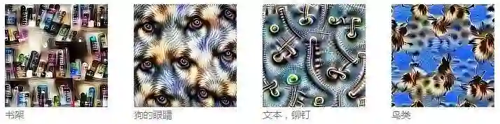 这些图样就像是作弊图形,用现实生活中不存在的方式激活了神经元。如果优化的步骤足够多,最终得到的东西是神经元确实有响应,但人眼看来全都是高频图样的图像。这种图样似乎和对抗性样本的现象之间有紧密的关系。(AI 科技评论编译也有同感,关于对抗性样本的更早文章可以看这里)