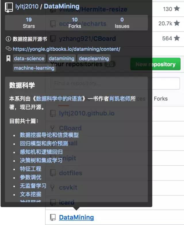 只需要把鼠标悬停在仓库链接即可。