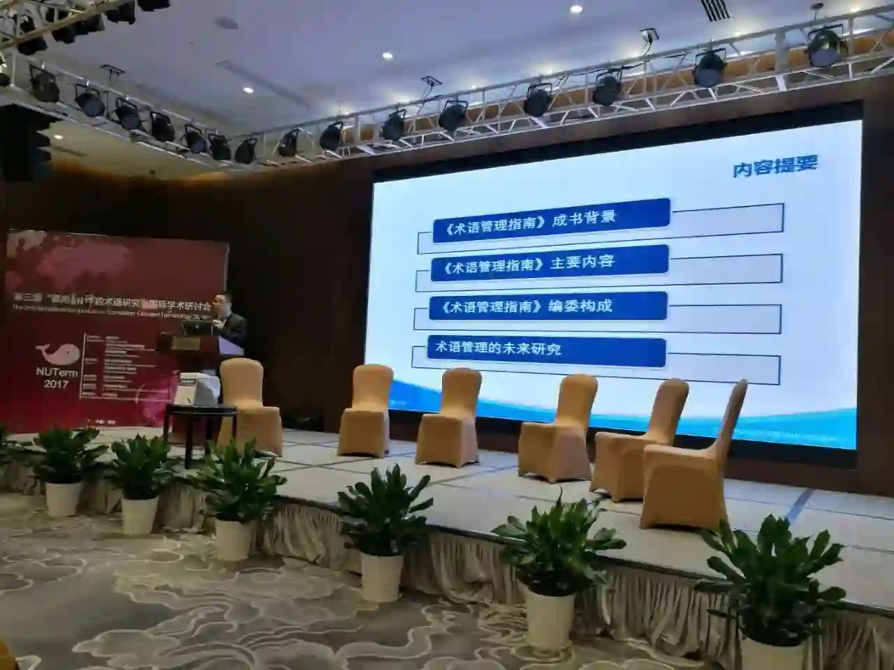 王华树教授从“成书背景”、“主要内容”、“编委构成”三个方面介绍了《术语管理指南》,并展望了术语管理的未来研究。