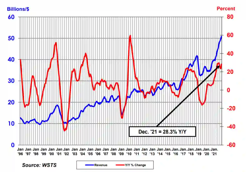 2021年第四季度的销售额达到了1526亿美元,相比2020年第四季度上涨28.3%,相比2021年的第三季度上涨4.9%。