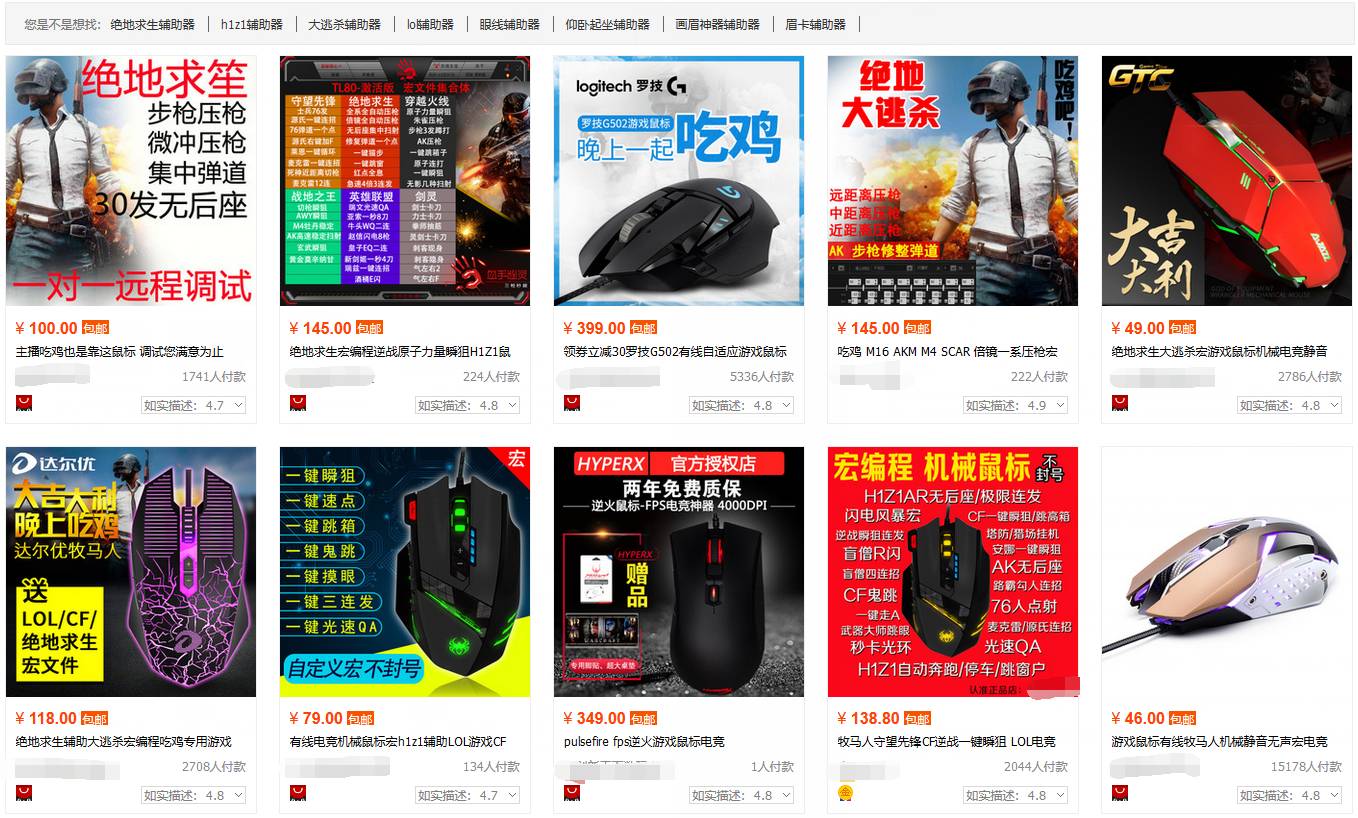 因为官方做了限制,在淘宝平台搜索外挂相关词汇所指向的通常是改装的硬件产品。鼠标还是那个鼠标,但已经预装了自动压枪、一键跳窗等宏命令,部分天猫加盟店也做起了这笔生意,评价内容还都不错。