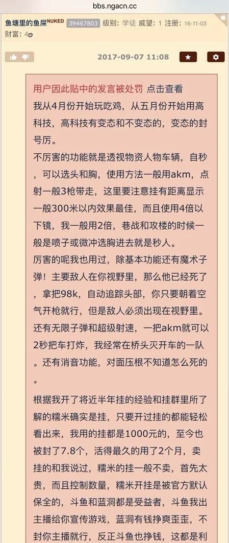 NGA论坛用户“鱼塘里的鱼屎”自曝了自己近半年来使用外挂的经历。