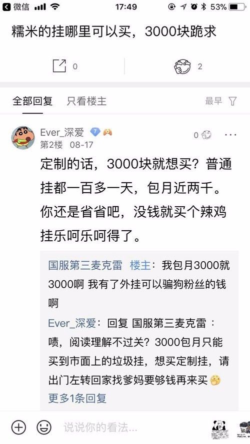 绝地求生贴吧里,一位吧友发帖悬赏3000元现金求糯米外挂购买方式,却遭到了楼下网友的无情嘲讽:“3000块就想买定制挂?还是省省吧,买个垃圾挂乐呵乐呵得了。”