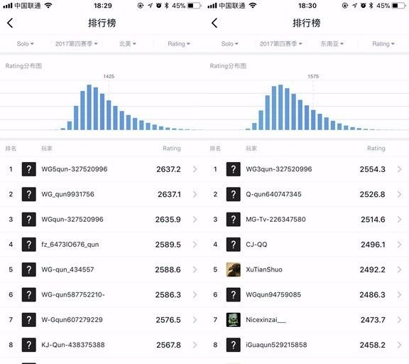 美服和东南亚服单排排行榜,榜首ID“外挂群-xxxxx”(数据来源小黑盒)