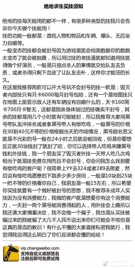 而商家们为了让外挂销路更广,在宣传手段上也令人叹为观止。跑步追车亲自展示效果的段子你们都看过了,各大服务器霸榜屡见不鲜,其实在微博等平台上也有精彩演出,他们都在不遗余力的标榜自己“与众不同”。