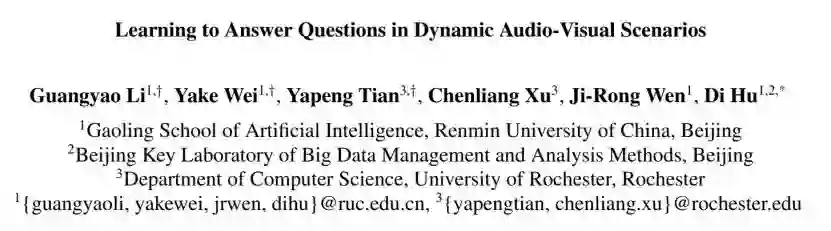 中国人民大学高瓴人工智能学院 GeWu 实验室提出了一种动态视音场景下的空间 - 时序问答模型,让 AI 能像人一样观看和聆听乐器演奏,并对给定的视音问题做出跨模态时空推理。论文已被 CVPR2022 接收并选为 Oral Presentation。 >>加入极市CV技术交流群,走在计算机视觉的最前沿