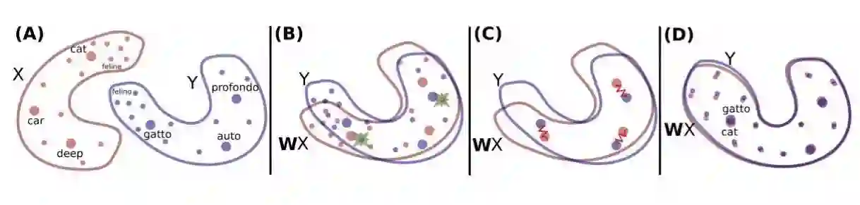 随着词嵌入的成功,跨语言词嵌入出现,其目标是对齐嵌入空间而不是词典。不幸的是,这种方法仍然依赖于双语词典或平行语料库。Conneau et al.(2018)在论文中呈现了一种很有前景的方法,该方法不依赖于任何特定资源,且在多个语言对的词翻译、句子翻译检索和跨语言词汇相似度任务上优于顶尖的监督方法。