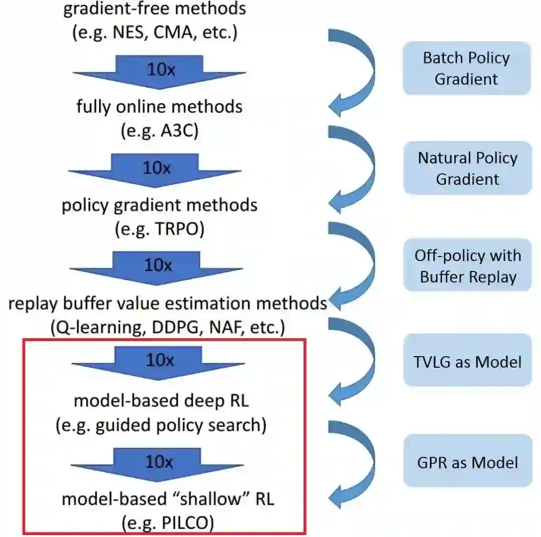 通过Recht的分析,我们似乎找到了DRL问题的根结。近三年在机器学习领域大火的DRL算法,多将免模型方法与DL结合,而免模型算法的天然缺陷,恰好与Alexirpan总结的DRL几大问题相对应(见上文)。