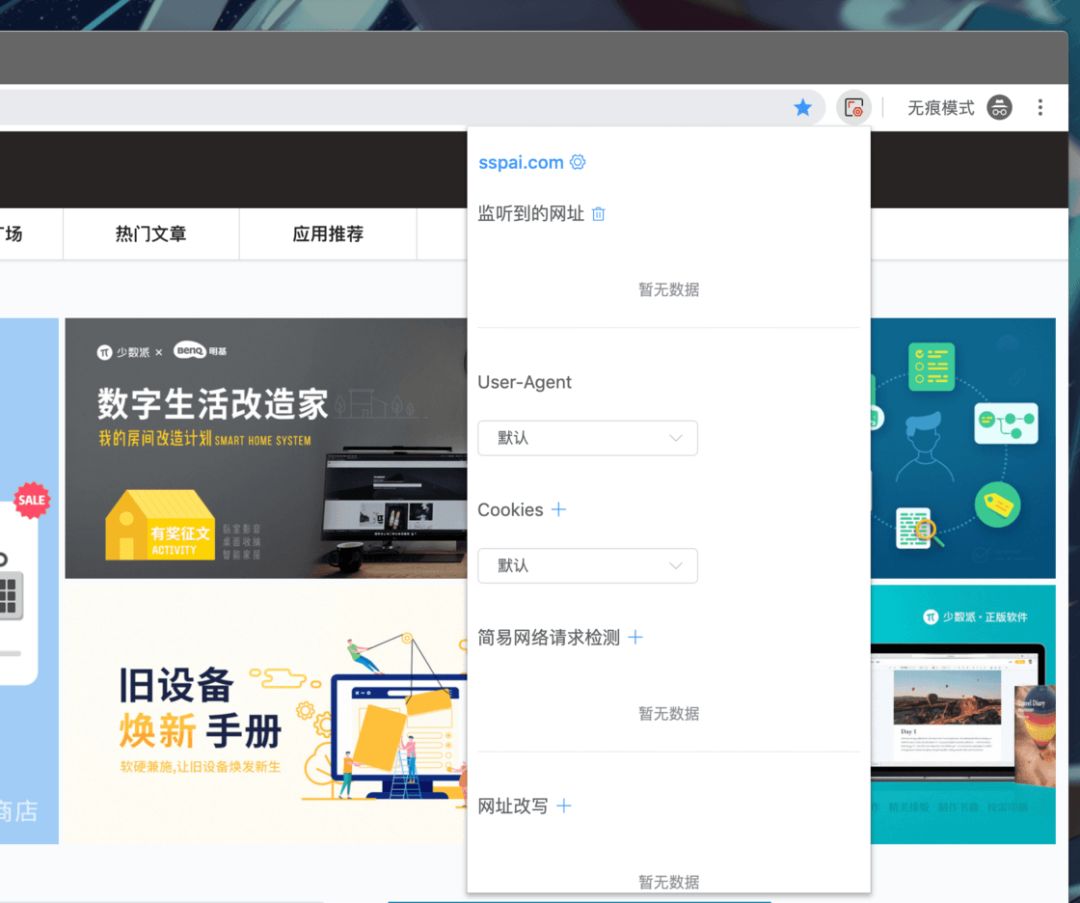 简易扩展的名字相当实诚,但功能性却毫不逊色。它可以帮助你快速切换用户代理、管理多个 Cookies、监听网络请求、改写静态和动态网址等,可谓前端开发者必备。