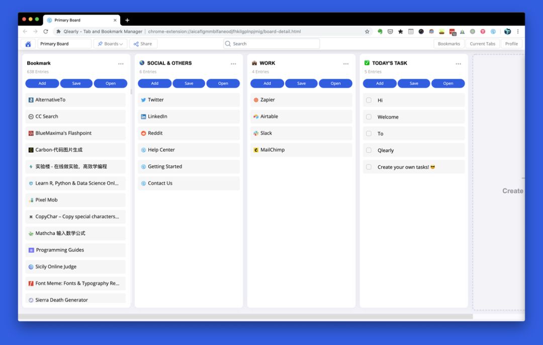 Qlearly 是一款有些特殊的 Chrome 新标签页扩展,你可以用它一键保存当前打开的标签页,将自己的收藏夹、喜欢的网站、暂存备用的标签页等分组收纳,并在需要时快速开启。此外,你还可以与他人协作,并分享自己的标签页组,提高自己的工作效率。