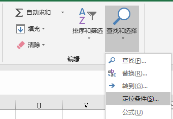 如图,表格中有3列是隐藏的,如果直接复制粘贴的话,隐藏的列会全部粘贴过来,选中数据,“开始”-“编辑”,选中“查找和选择”下拉列表中的“定位条件”;