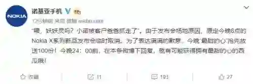 据消息了解,诺基亚手机发布官微称:“由于发布会场地原因,原定今晚8点的Nokia X系列新品发布会临时取消。“只解释了7月11日晚上8点的Nokia X系列新品发布会是因为场地原因造成的取消,并没有给出明确的其他的发布会时间。
