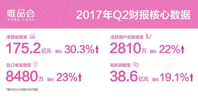 唯品会Q2总净营收增至175.2亿元,涨幅达30.3%。收入提升的驱动主要来自于用户总数增长、复购用户增加以及总订单量的上涨。