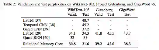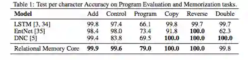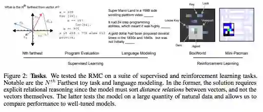 总的来说,我们的结果显示,记忆交互的显式建模还提高强化学习任务,以及程序评估、比较推理和语言建模的性能,这表明在递归神经网络中加入关系推理能力的价值。