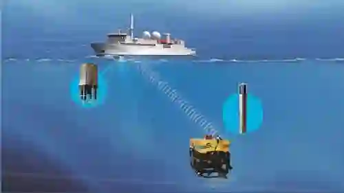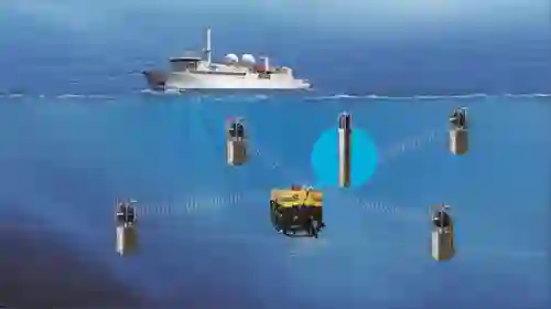 在水下,声波信号相比电磁信号能够传播更远的距离,因此声学导航也是水下导航的重要手段。利用声学导航首先要在水下布设应答器基阵,根据航行体与应答器之间声信号传播确定航行器相对应答器的位置。主要有长基线导航(LBL)、短基线导航(SBL)和超短基线导航(USBL)三种形式。