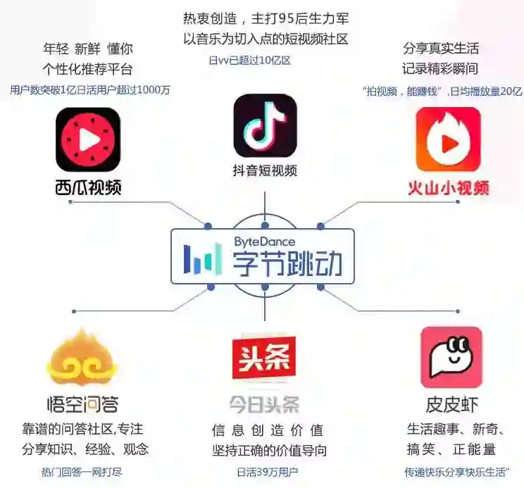 以相同的“推荐算法”为核心,披上不同的“产品设计”当外衣,就能重复利用“头条”的本质能力,快速复制出大量算法相似形态不一的App,占领内容生产的每一个细分领域。用数据分析出潜力最高的产品,重点分配流量,“明星”产品的诞生如此简单。
